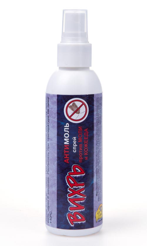 Вихрь антимоль Спрей - для защиты изделий из шерсти и меха от повреждения молью. Новейшее активное вещество эффективно уничтожит не только бабочек моли, но и ее личинки. Средство действует деликатно и бережно, не повреждает структуру меха и шерстяных волокон и не оставляет пятен на поверхности обработанного изделия. Не оставляет следов, пятен на ткани. Длительность действия 6 месяцев.